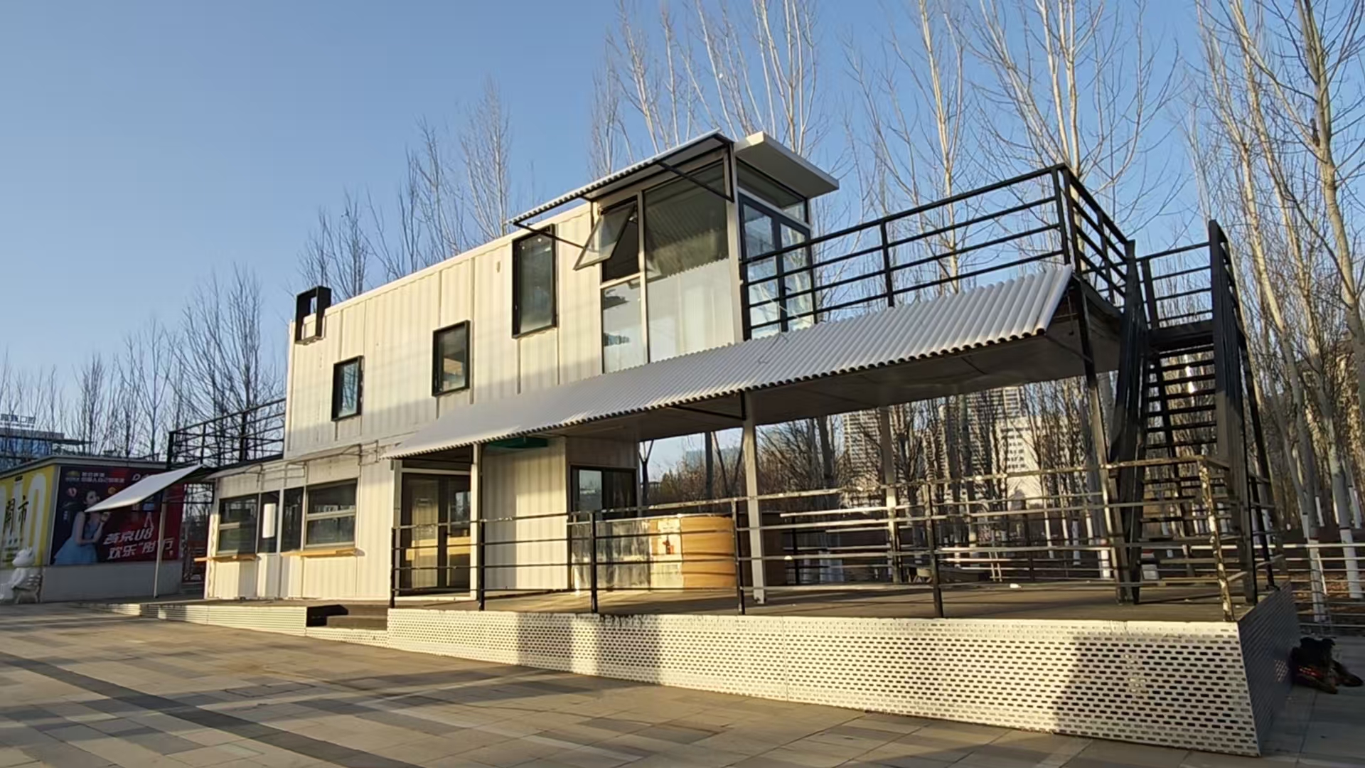 延安新城中環(huán)廣場(chǎng)“創(chuàng)意集裝箱網(wǎng)紅獨(dú)棟 ”,房子尺寸:長(zhǎng)23.4米,寬4米,帶外走廊:寬是5.5米。