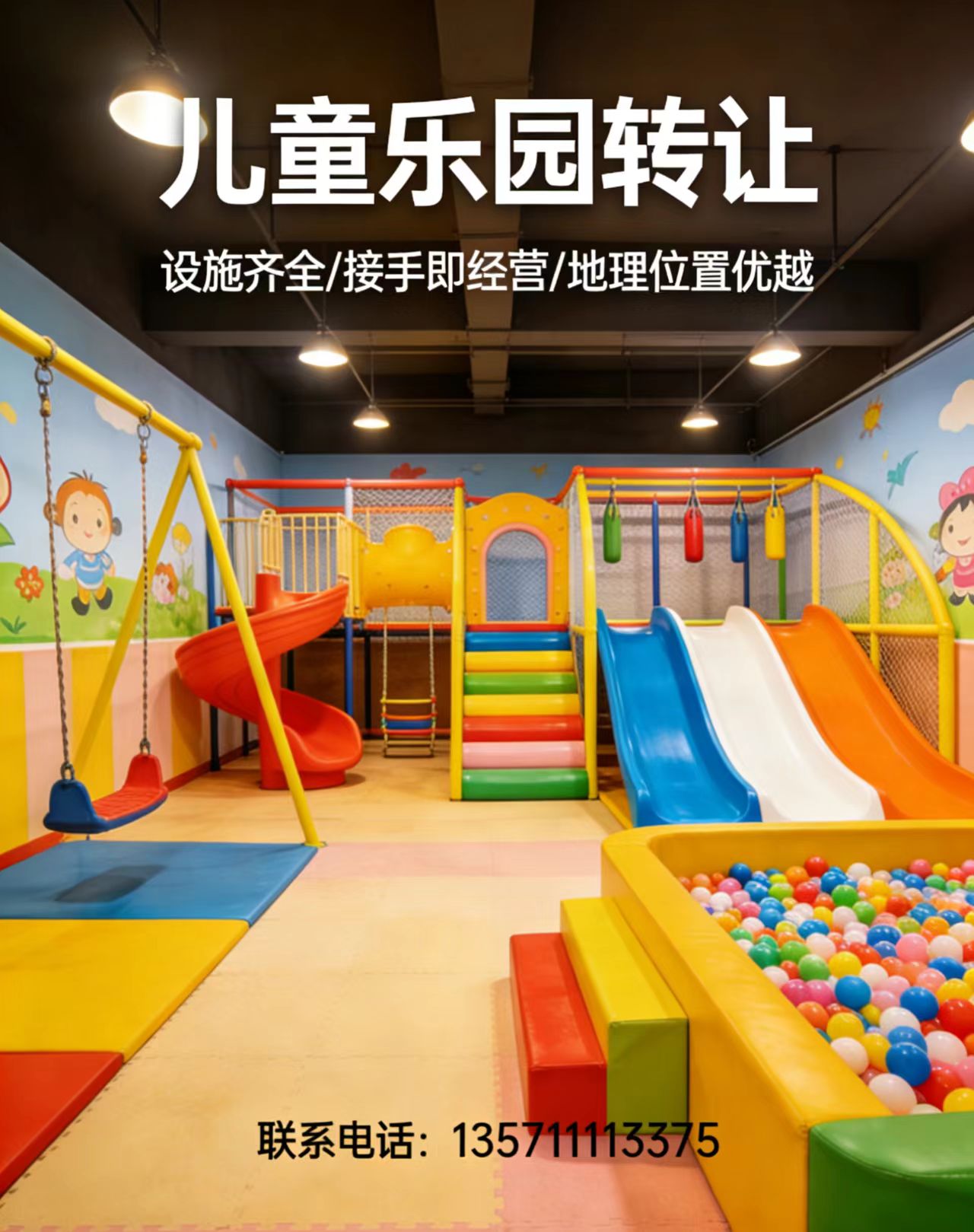因個(gè)人原因,無(wú)暇打理,現(xiàn)誠(chéng)意將“營(yíng)業(yè)中兒童樂園整體轉(zhuǎn)讓”,設(shè)備齊全,客源穩(wěn)定,接手即可盈利!有意者可實(shí)地考察,價(jià)格詳情面談!